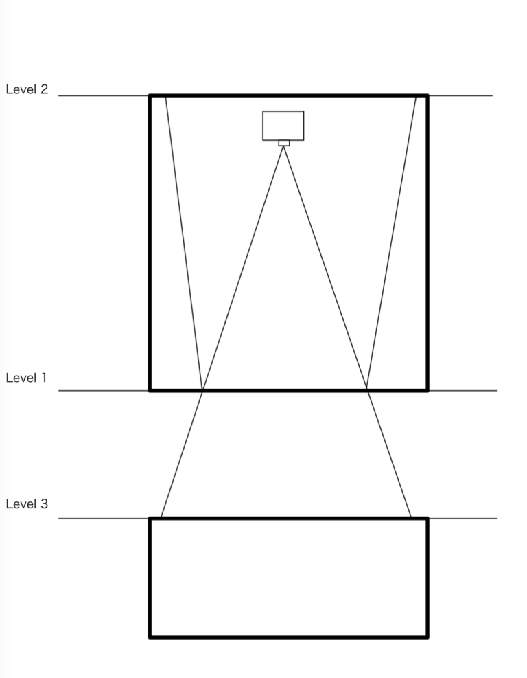 Level 3. The rays of light that continued through the glass pane to the facade of the opposite building.