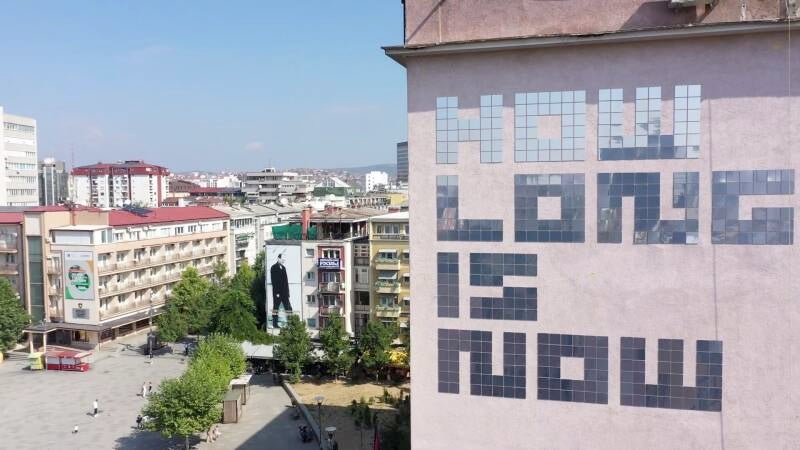 HOW LONG IS NOW, 1997 - Globalodromia FILOART, Reflection of NOW, Zahir Pajaziti Square, Prishtina, 2019-2022